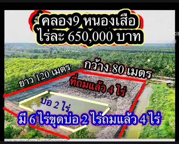 • ที่ดินคลองเก้า หนองเสือ ซอยเอี่ยมสะอาด 6ไร่ ที่ถมแล้ว 4 ไร่ บ่อ 2 ไร่, ภาพที่ 1