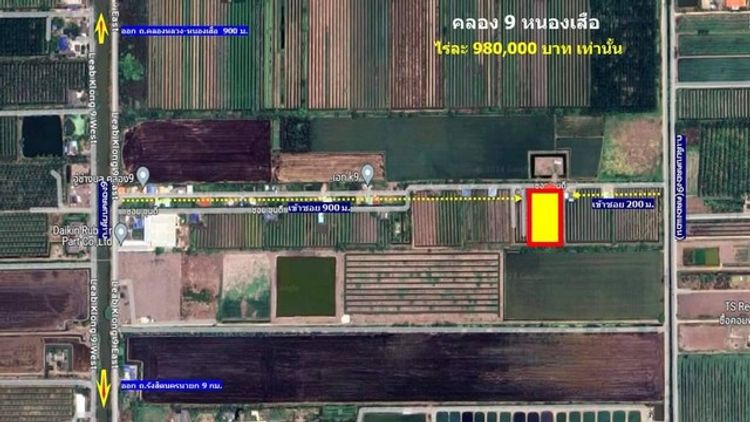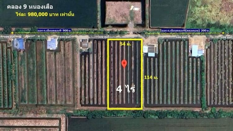 ที่ดินคลอง 9 (ซอยขุนดี) หนองเสือ เนื้อที่ 4 ไร่ๆ ละ 980,000 บาท เท่านั้น