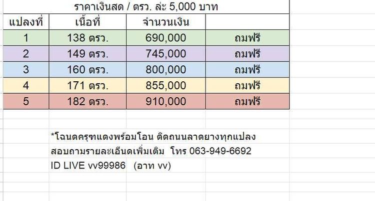 - ติดถนนลาดยางทุกแปลง