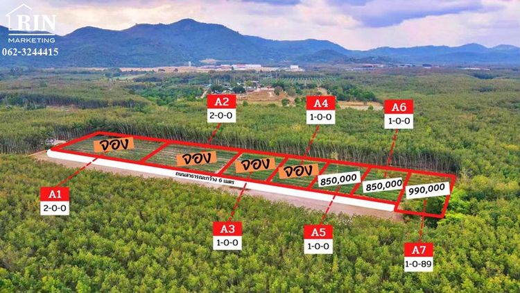 ที่ดินแบ่งขายเนื้อที่ 1 ไร่ ใกล้วังจันทร์ วัลเลย์ 3 กม. ไร่ละ 850,000 บาท