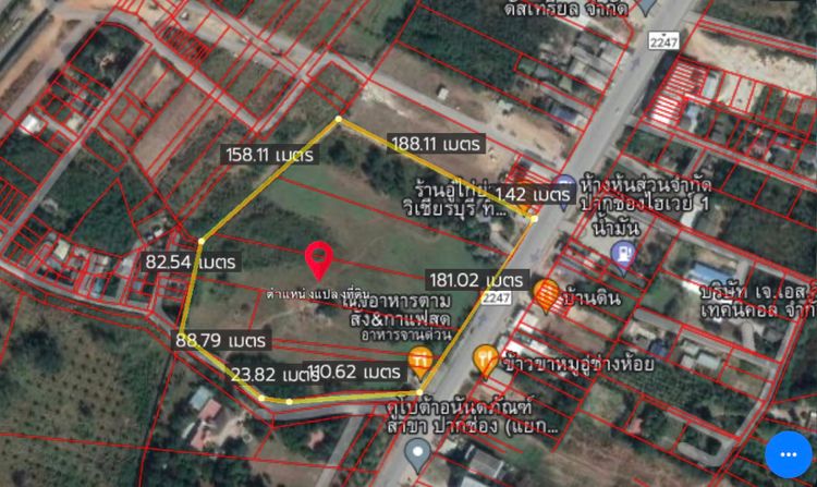 ☛ ด้านหน้ากว้างติดถนน 180 เมตร ลึก 188 เมตร