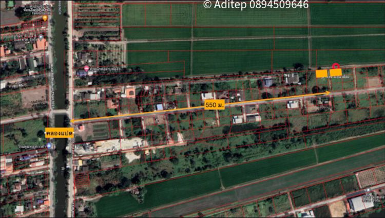 ที่ดิน คลองแปด แบ่งขาย 2 แปลง แปลงละ 100 ตรว. ใกล้ถนนรังสิต-นครนายก เหมาะปลูกบ้าน