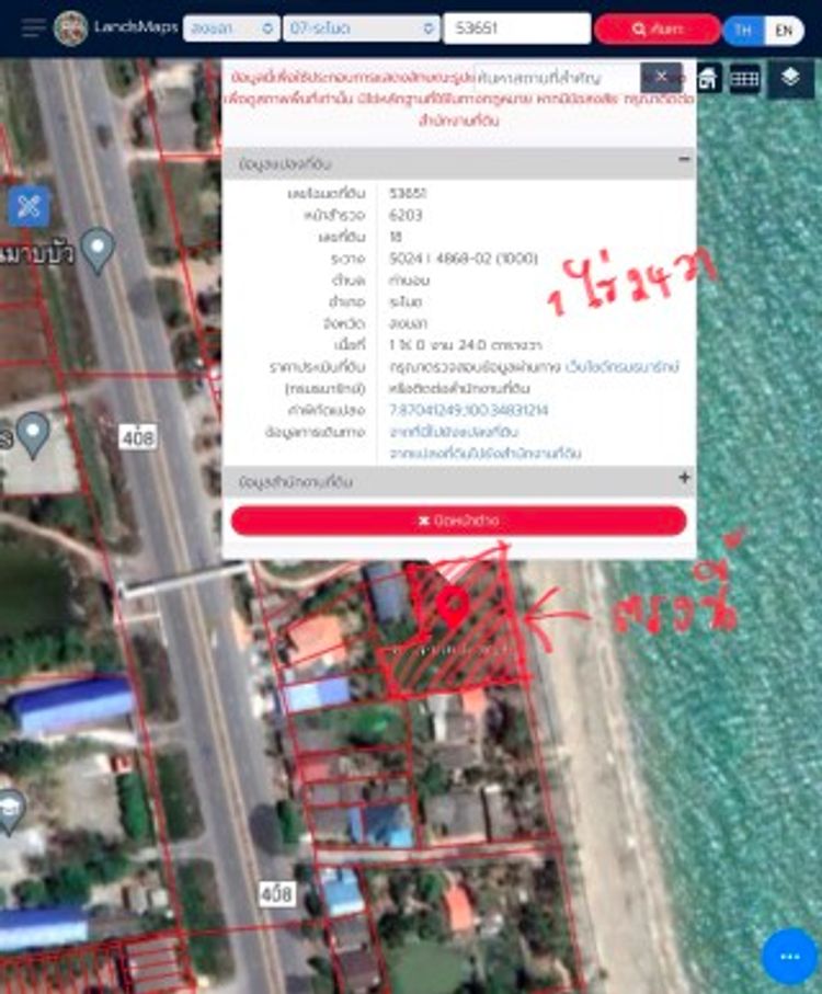 • ที่ติดทะเลหายาก ติดหาดยาว 47 +20 เมตร1ไร่ 24วา ขาย 3 ล., ภาพที่ 1