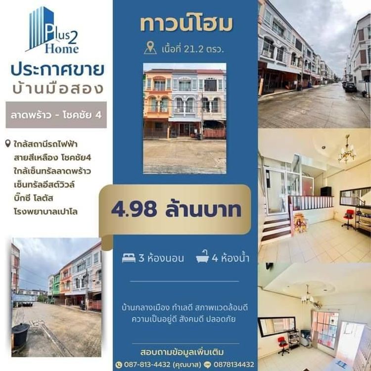 #ขายทาวน์โฮม บ้านกลางเมือง ลาดพร้าว-โชคชัย4 ติดกองปราบ