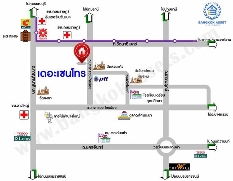 - ใกล้ห้างสรรพสินค้าเซ็นทรัลเวสต์เกต, เซ็นทรัลรัตนาธิเบศร์, อิเกีย บางใหญ่, บิ๊กซี บางใหญ่, The Walk ราชพฤกษ์