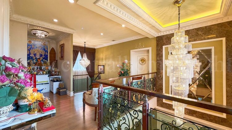 - 4 ห้องนอน, 5 ห้องน้ำ, 1 ห้องรับแขก, 1 ห้องรับประทานอาหาร, 1 ห้องครัวไทย, 1 ห้องครัวฝรั่ง, 1 ห้องแม่บ้าน, 2 ที่จอดรถ