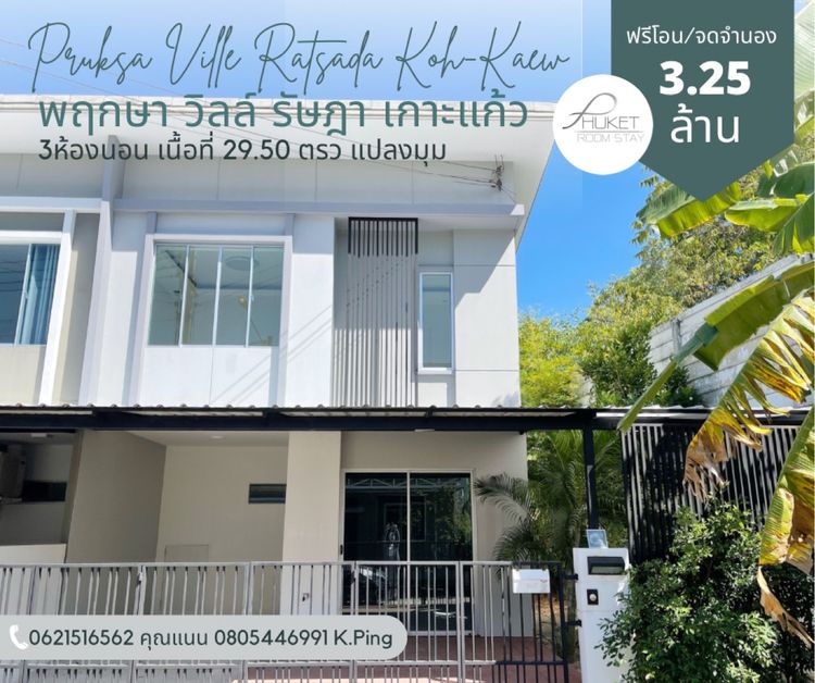 • พฤกษาวิลล์ รัษฎา - เกาะแก้ว Pruksa Ville Ratsada Kohkaew - Phuket ทาวน์โฮม2ชั้น พฤกษา วิลล์ 94 แปลงมุม พร้อมพื้นที่จัดสวนข้างบ้าน, ภาพที่ 1