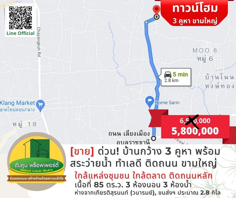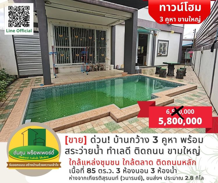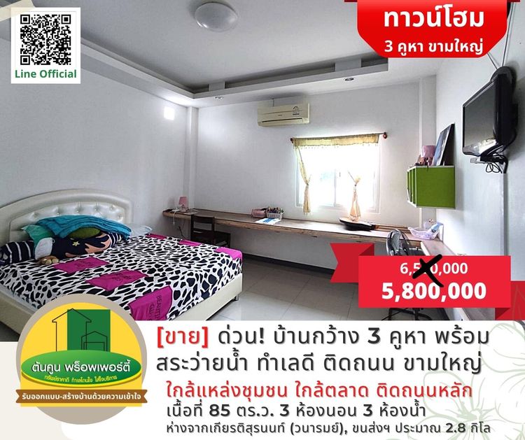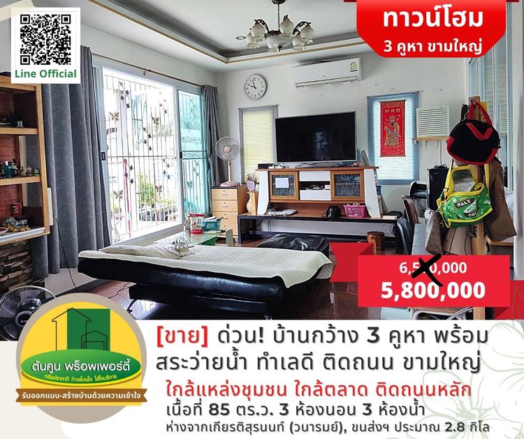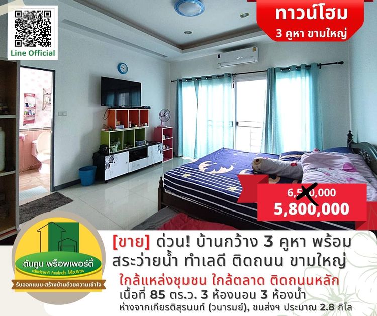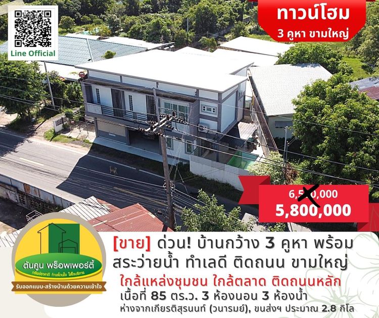 ทาวน์โฮมหลังใหญ่ 3 คูหาทะลุหากัน ใกล้แหล่งชุมชน เหมาะสำหรับอยู่อาศัย หรือเปิดหน้าร้าน