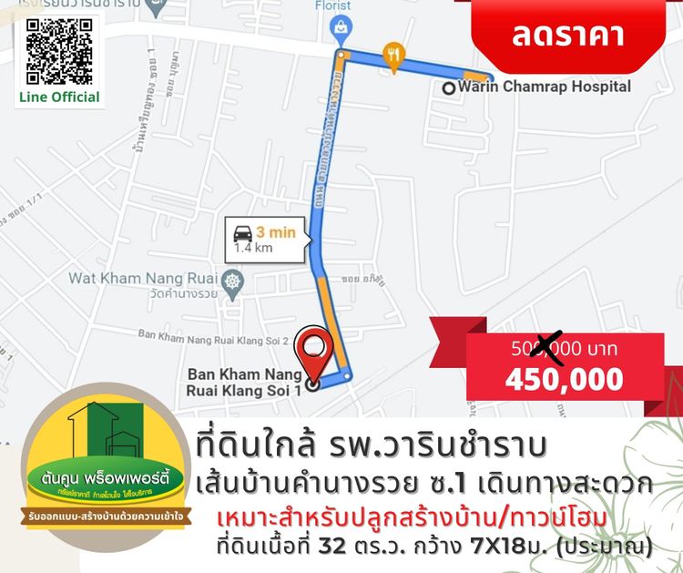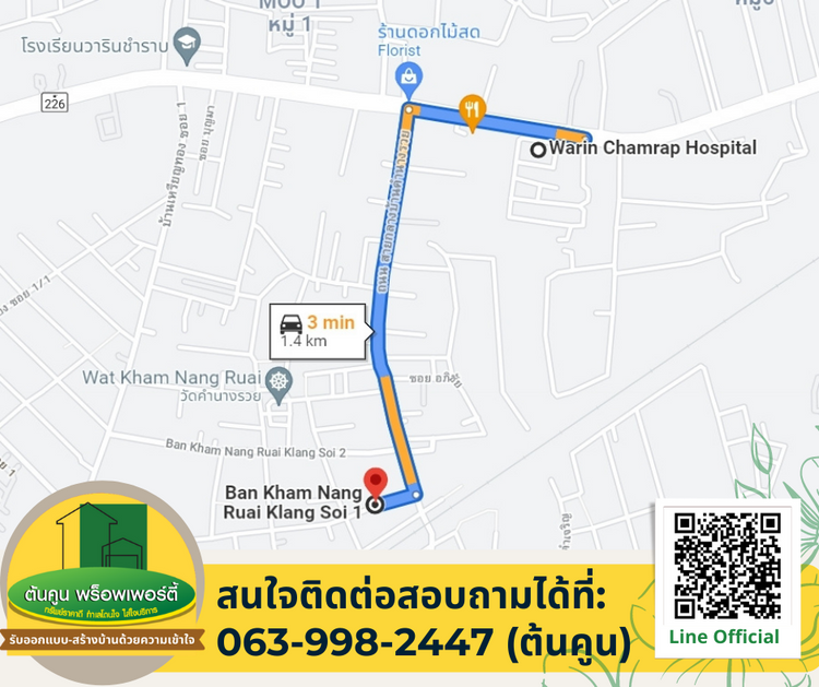 มีเพื่อนบ้านหลายหลัง เดินทางสะดวก ห่างจากถนน เพียง 1 กม