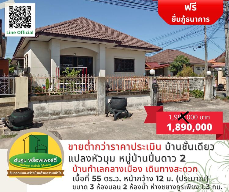 • [ลดราคา] บ้านชั้นเดียวแปลงหัวมุม หมู่บ้านปิ่นดาว 2 ขายต่ำกว่าราคาประเมิน (บ้านนาควาย) บ้านอุบล ราคาไม่แพง, ภาพที่ 1