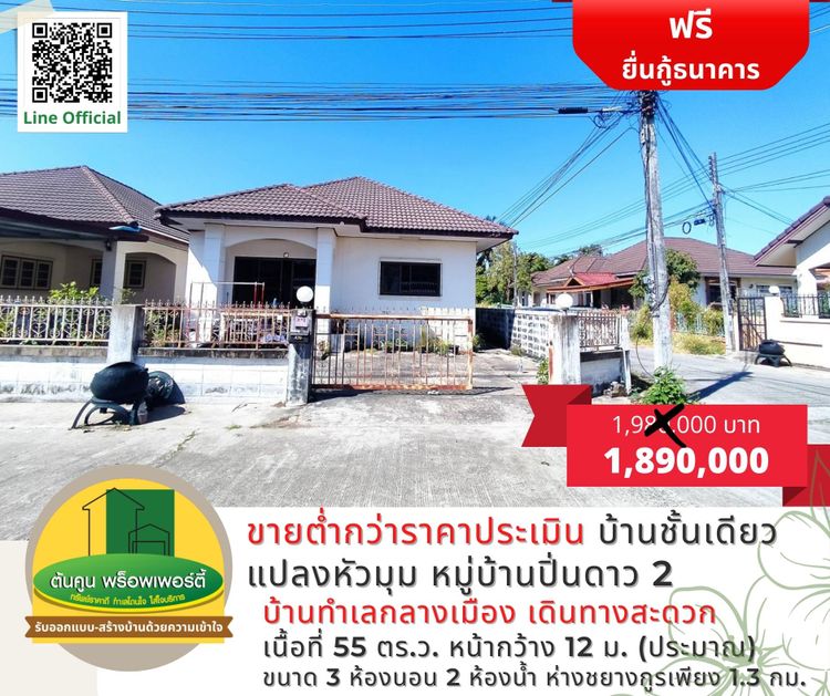 [ลดราคา] บ้านชั้นเดียวแปลงหัวมุม หมู่บ้านปิ่นดาว 2 ขายต่ำกว่าราคาประเมิน (บ้านนาควาย) บ้านอุบล ราคาไม่แพง, ภาพที่ 2