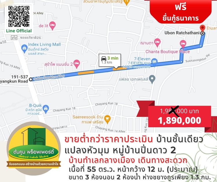 ✅ สาธารณูปโภคครบ เดินทางสะดวก ห่างถนนชยางกูรเพียง 1.3 กม.