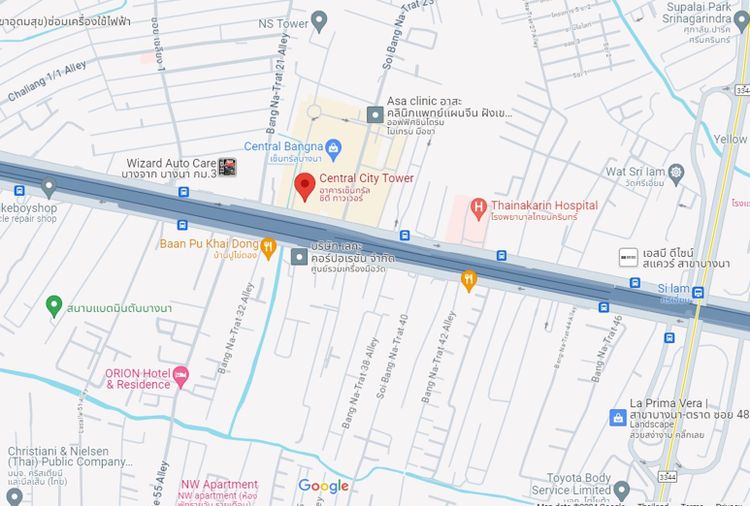 อาคารเซ็นทรัล ซิตี ทาวเวอร์ บางนา (Central City Tower Bangna) สำนักงานให้เช่าติดห้างเซ็นทรัลบางนา ใกล้รถไฟฟ้า MRT ศรีเอี่ยม 1.2 กม.
