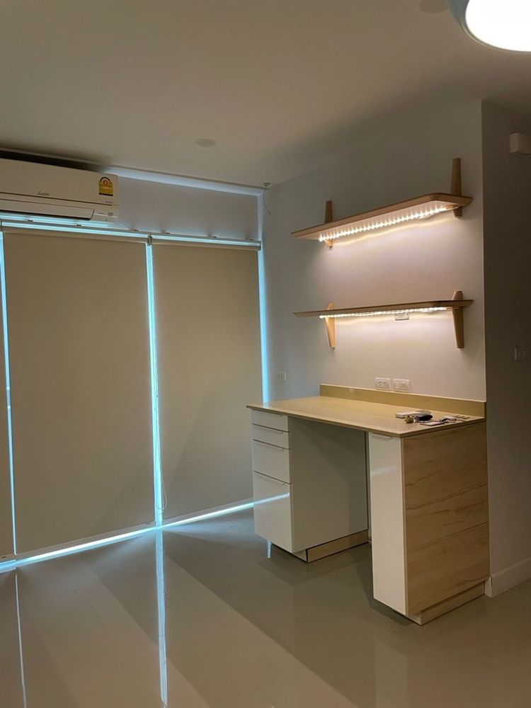 • ผ้าม่านแบบม้วนที่บานกระจกประตูหลังบ้านชั้น 1