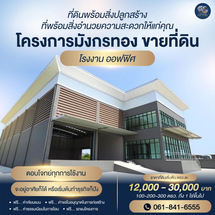 โครงการมังกรทองบ ขายที่ดินเพื่อสร้าง โรงงาน คลั่งสินค้า สอบถามโทร 061-8416555