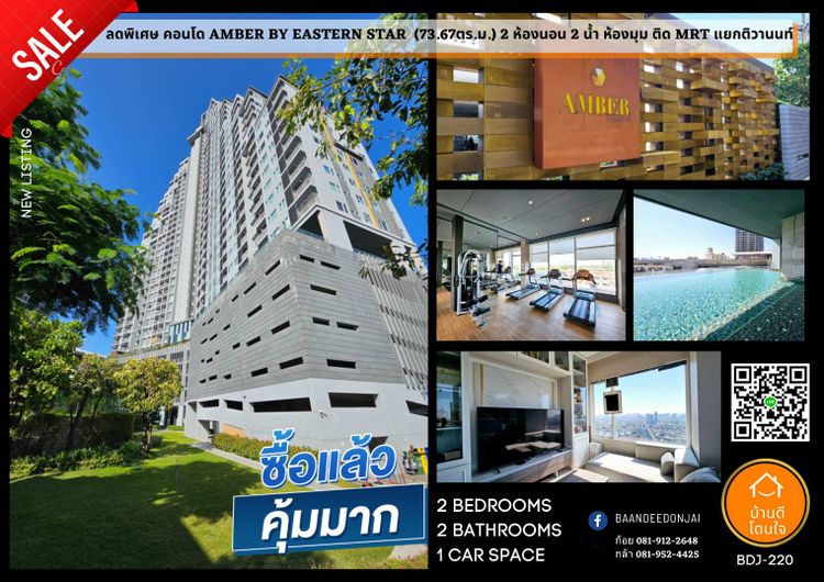ลดพิเศษ คอนโด Amber by Eastern Star (73.67 ตร.ม.) 2นอน 2น้ำ ห้องมุม ติด MRT สถานีแยกติวานนท์