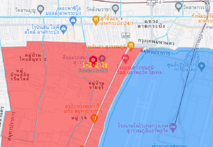 ใกล้ สนามบินสุวรรณภูมิ กิ่งแก้ว 45 ที่ดิน 1-2-2 ไร่ ถมแล้ว พร้อมใช้