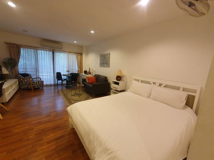 Karnkanok 3 (KK3) 45 sqm condo fully l furnished and full of light with a fantastic balcony. studio room 1 bathroom . this beautiful and cosy condo and part of a new complex with pool, gym, sauna and security. The place is 10 minutes scooter ride distance from the old city. fully furnished with great quality product. Kitchen, fridge, microwave. Silence and green landscape all around is what you will get. Rent 8,000 baht/month.