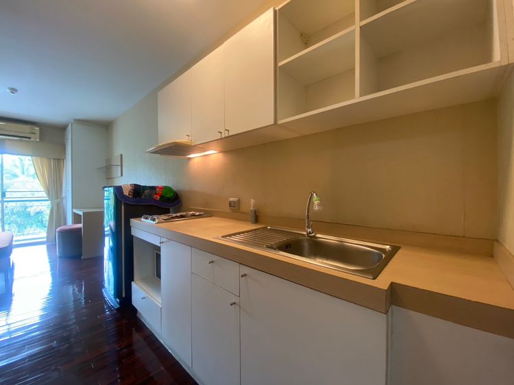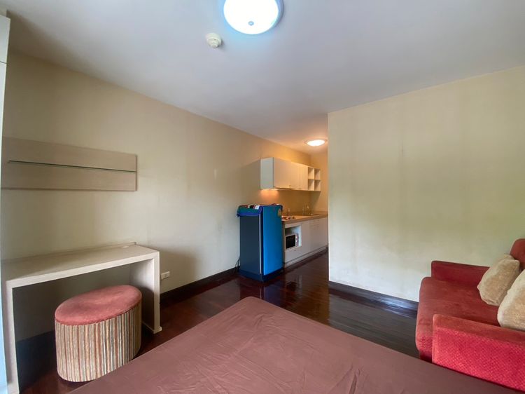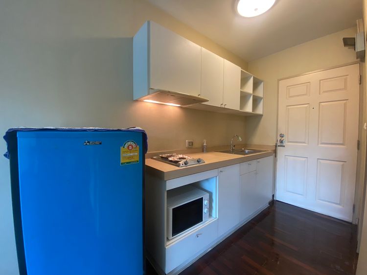 ชั้น 4 ระเบียงทิศเหนือ ห้องสตูดิโอ ขนาด 27 ตรม. พร้อมเฟอร์นิเจอร์ และเครื่องใช้ไฟฟ้าครบ แอร์ ทีวี ตู้เย็น ไมโครเวฟ เครื่องทำน้ำอุ่น เตาไฟฟ้าพร้อมที่ดูดควัน