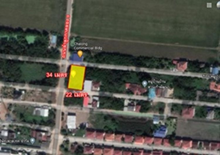 ให้เช่าที่ดิน ติดถ.ลำลูกกาคลอง 9 ขนาดที่ดิน กว้าง 34ม. ลึก 22ม. 7,899 b-m 200ตรว. 800ตรม. ตลาดคลอง 8