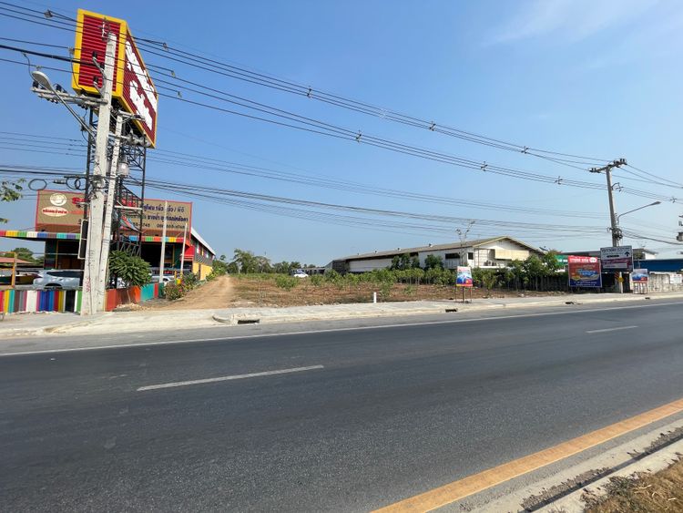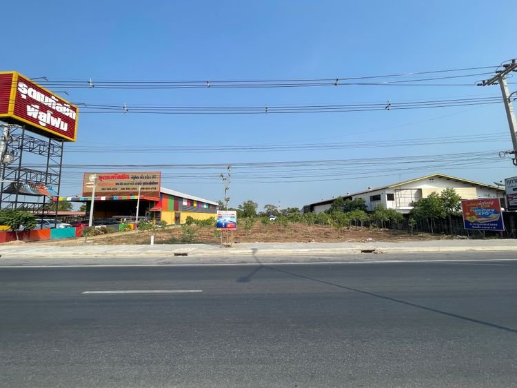 - ด้านหน้าที่ดิน ติดถนนใหญ่ กว้าง 40 เมตร