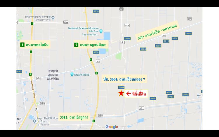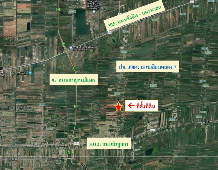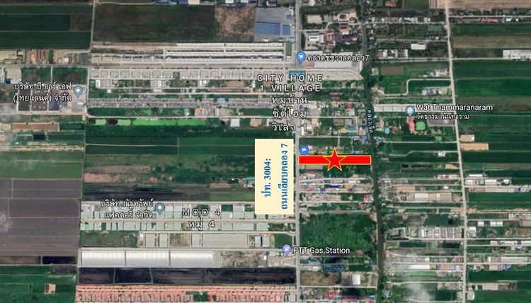 - ที่ดินติดถนนใหญ่ ปท 3004 (เลียบคลอง 7 ฝั่งตะวันตก) เชื่อมต่อ ถนน ลำลูกกา-ธัญญะ