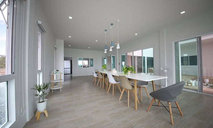 เนื้อที่ 6 ไร่ พื้นที่ใช้สอยตัวอาคารประมาณ 1,000 ตารางเมตร จำนวน 2 ชั้น 5 ห้องนอน 6 ห้องน้ำ 2ห้องโถง