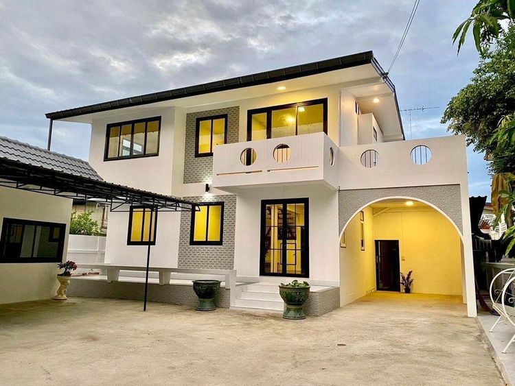เนื้อที่ 100 ตารางวา พื้นที่ใช้สอย 300 ตารางเมตร 4 ห้องนอน 2 ห้องน้ำ จอดรถ 6 คัน