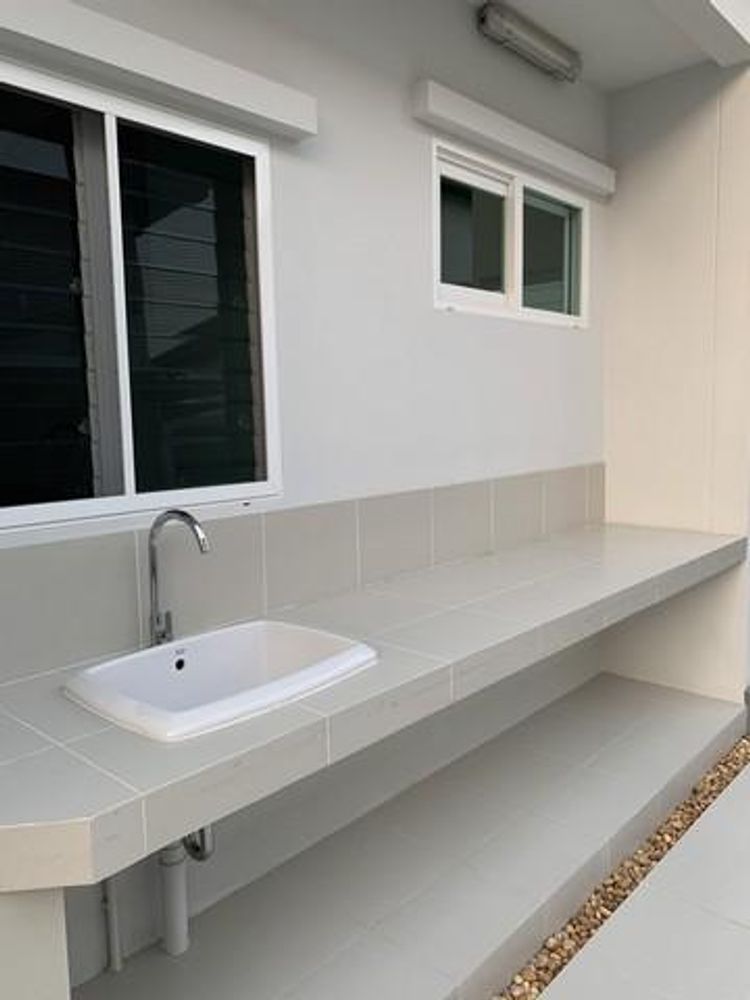 เนื้อที่ 158.4 ตารางวา พื้นที่ใช้สอย 286ตร.ม จำนวน 2 ชั้น 4 ห้องนอน 6 ห้องน้ำ 1ห้องแม่บ้าน จอดรถ 3 คัน