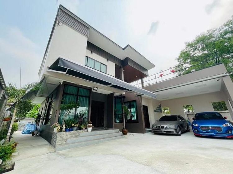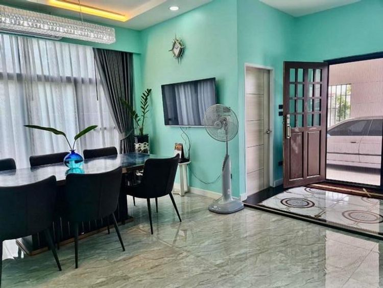 เนื้อที่ 113.8 ตร.ว พื้นที่ใช้สอย 300 ตรม. มี 3 ห้องนอน 4 ห้องน้ำ แอร์ 5 เครื่อง จอดรถยนต์ได้ 6 คัน