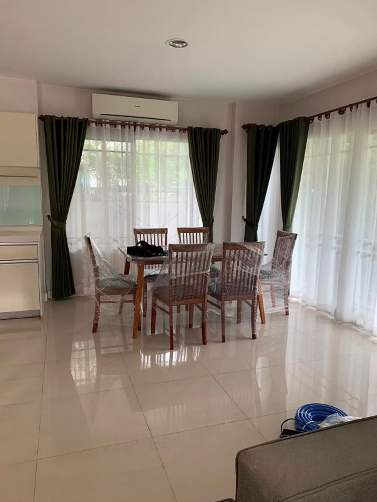 A single house fully-furnished for rent on 20 minute from Airport the located is near Promenada resort mall , Big C , Plot size 95 sq.wah / living space 180 sqm. 3 Bedrooms 3 Bathrooms with water heater, Living room, Kitchen room , 4 Air conditioners. Provide the facilities like gym and swimming pool with a security guard 24 hours. Rent 32,000 Baht/Month.