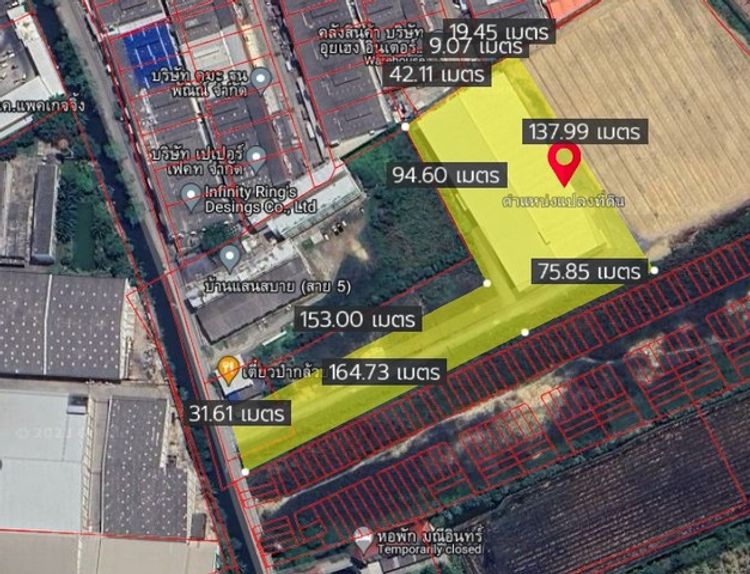 - พื้นที่ที่ดินขนาด 5-2-0 ไร่ กว้าง 75 x 140 M รถเทรลเลอร์เข้าออกได้ 8 M