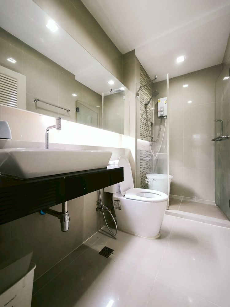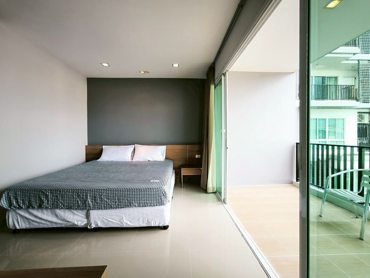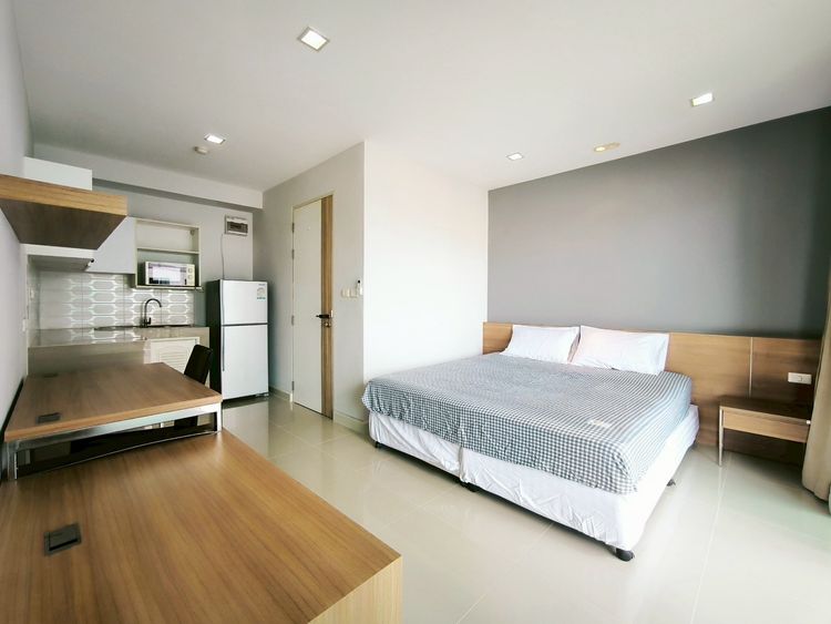 ห้อง One Bed 37 ตรม. มีเครื่องปรับอากาศ เตียงนอน ที่นอน ตู้เสื้อผ้า ตู้เย็น เครื่องทำน้ำอุ่นห้องพร้อมเข้าอยู่