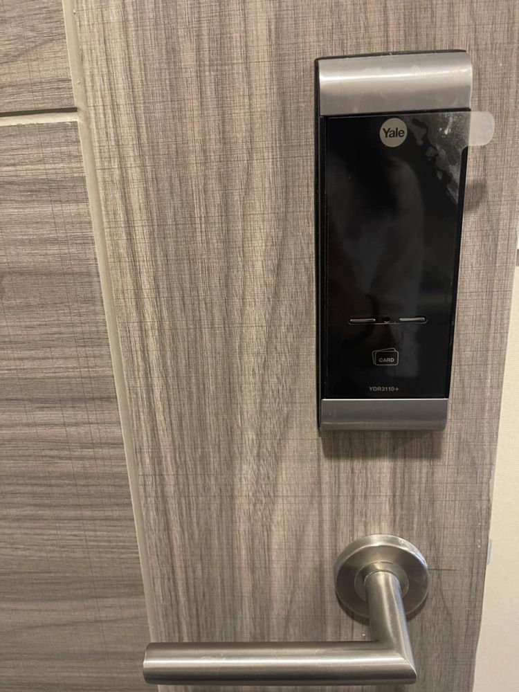- ประตูและลิฟท์ขึ้นตึกระบบ Key card
