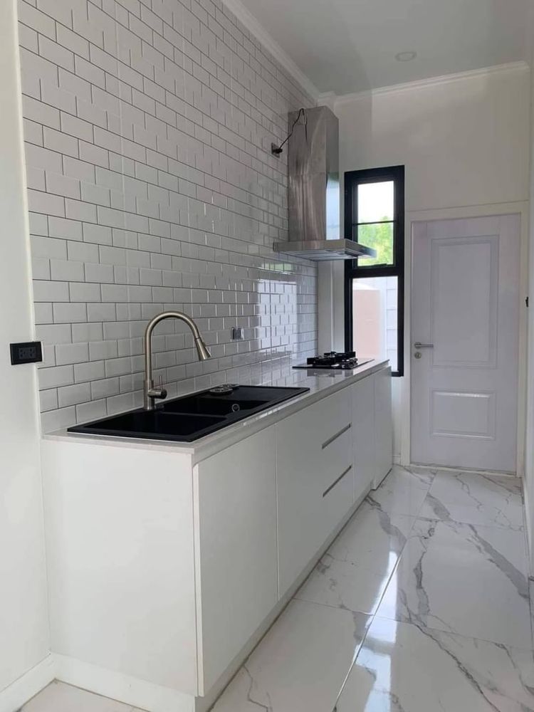 1 ห้องครัวพร้อมเตาฮู๊ด ท๊อปหินแผ่นใหญ่ และพื้นที่สำหรับกินข้าว