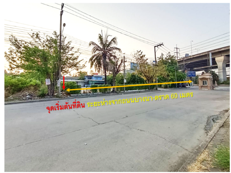 ติดทางสารธารณประโยชน์ถนนกว้าง 20 ม. ระยะห่างเพียงแค่ 60 เมตร จากถนนบางนา-ตราด