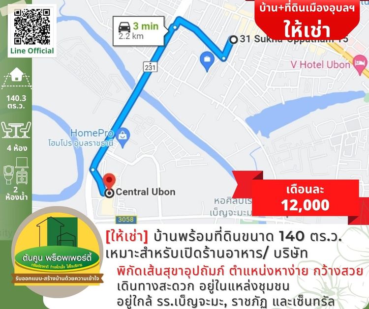 เดินทางสะดวก อยู่ใกล้ รร.เบ็ญจะมะ, ราชภัฏ และเซ็นทรัล
