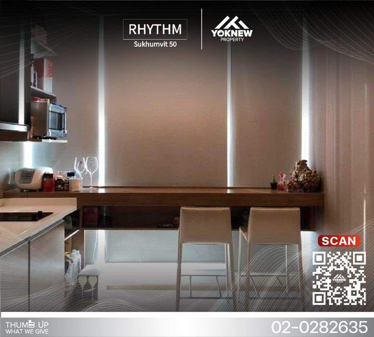 ให้เช่า Rhythm Sukhumvit 50ห้อง Size 46 SQ.M  รีโนเวทมาดีมาก เฟอร์ครบ ย้ายเข้ามาอยู่ได้เลย, ภาพที่ 2