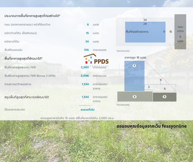 A Prime 129 Square Wah Plot In a location you won't find again! • The Best Location: Situated in Soi Pridi Banomyong 26 (Phatthanawet Soi 6). Excellent environment, wide soi, easy two-way traffic flow. • Ready for Immediate Development: The land is fully filled (elevated), higher than the road, 100% flood-free. • Extra Wide Road Access: Fronts a public concrete road, a generous 6 meters wide, ensuring comfortable entry and exit. • Ideal Dimensions: Approximately 15 m. wide x 34.4 m. deep. Perfect for building a luxury 5-6 storey home or an office building. • Full Utilities: Water, electricity, and drainage system are all available in front of the plot.