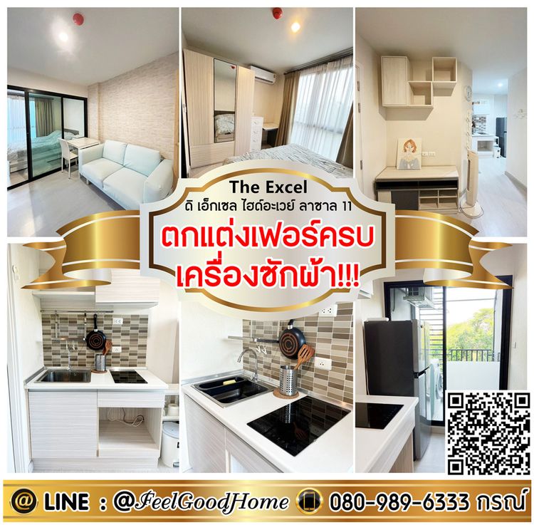 ***ให้เช่า ดิเอ็กเซล ไฮดะเวย์ ลาซาล11 (เครื่องซักผ้า!!! + ตกแต่งเฟอร์ครบ) LINE : @Feelgoodhome (มี@หน้า)