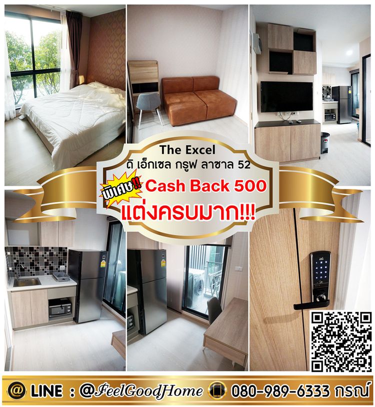 ***ให้เช่า ดิ เอ็กเซล กรูฟ ลาซาล52 (ตกแต่งครบมาก!!! + เครื่องซักผ้า!!!) *รับโปรพิเศษ* LINE : @Feelgoodhome (มี@หน้า)