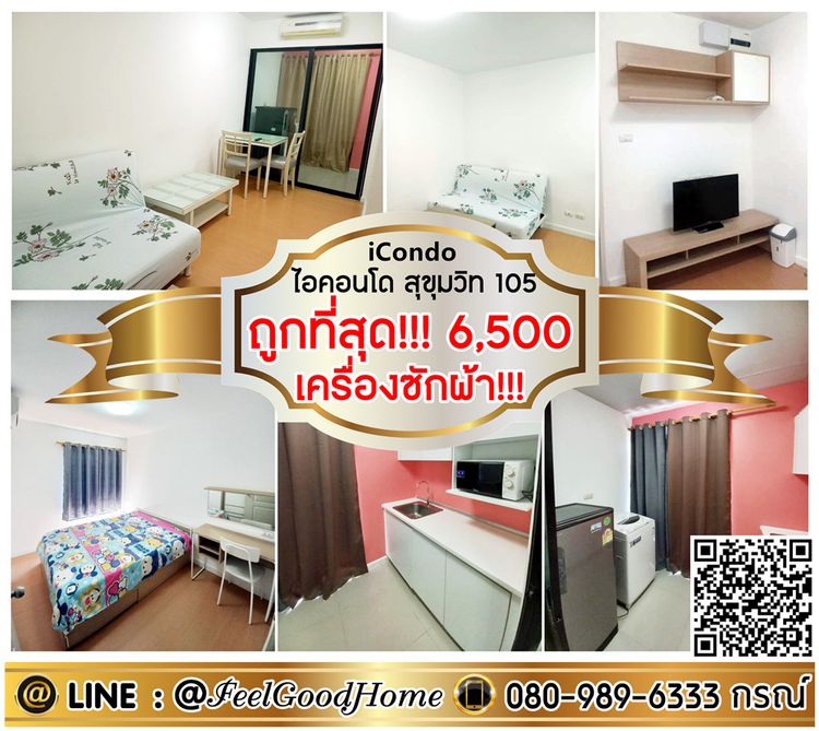***ให้เช่า ไอคอนโด สุขุมวิท105 (ถูกที่สุด!!! 6,500/ด + เครื่องซักผ้า) LINE : @Feelgoodhome (มี@หน้า)