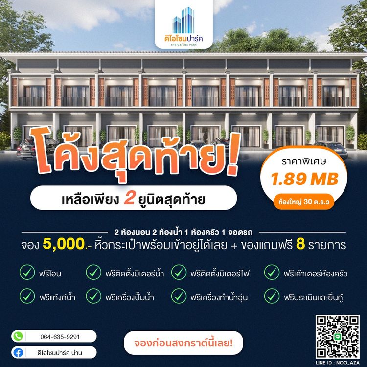 2 ยูนิตสุดท้าย!! ทาวน์โฮม 2ชั้น สร้างใหม่ พร้อมอยู่ ทำเลดี อ.เวียงสา จ.น่าน ใกล้ถนนเอเชีย พร้อมของแถมฟรี 8 รายการ