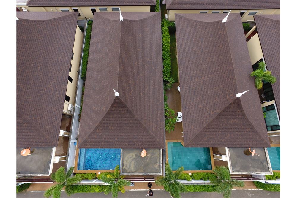 These Beautiful 3 Pool villas consists of 2 bedrooms, 2 bathrooms, living area on the front ( just right by the pool ) with dinnig and kitchen. It is fully furnished and ready to move in and the front of the property has covered parking. Currently is renting out daily with an impressive rate by the owner, the rental rate is between 2000-5000 baht per night depending on the season. It would be a perfect opportunity for any investors who are interested about the villa rental market.