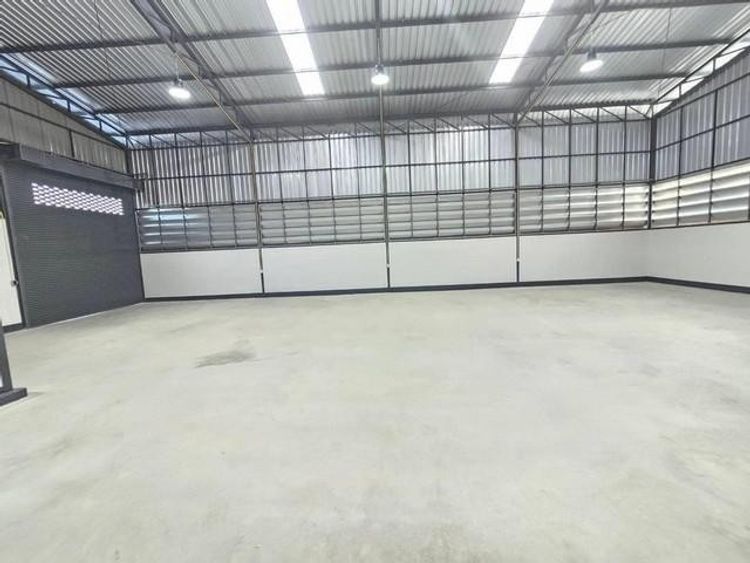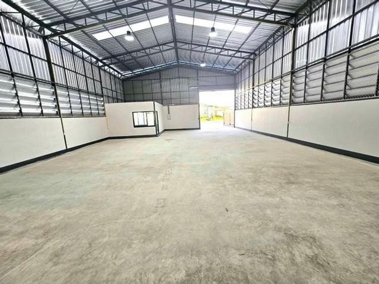 ตัวโกดังพื้นที่ 450 ตรม. สูง 7 เมตร ออฟฟิศ 25 ตรม. ห้องน้ำ 1 ห้อง ที่จอดรถ 12 คัน
