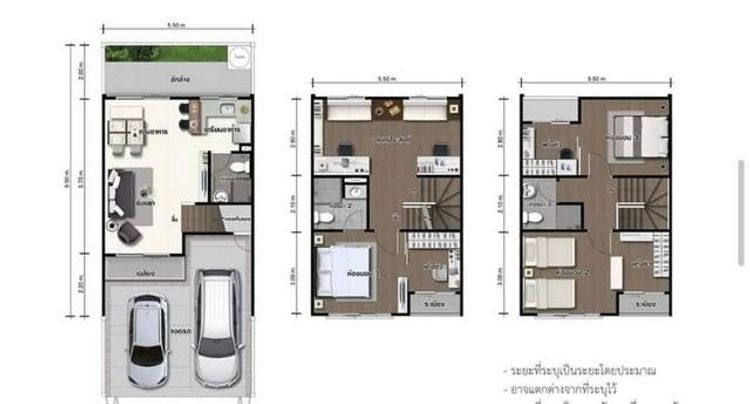 ห้องนอน 2, ห้องนอน 3,ห้องน้ำ 2, โถงบันได