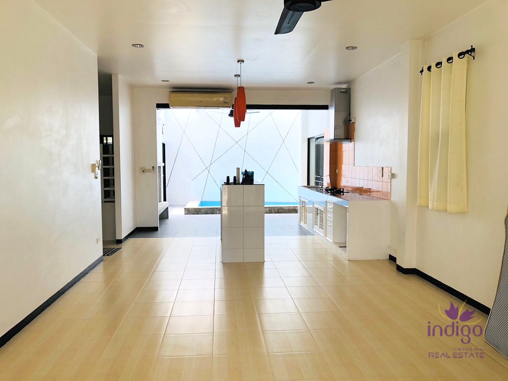 House for sale 3 bedroom partly furnished at Sanphisuea ,Muang,Chiang MaiSingle-story house with an area of 50 square wah, 3 bedrooms, 2 bathrooms, partly furnished.From the front of the house, there is an area for parking 2 cars. Walking into the house on the right-hand side, there will be a wide open space that can be adjusted to be a guest reception area. Next to it is a long kitchen counter and a counter in the middle. Next to the kitchen counter, there is a small pool, suitable for a relaxing spa for the family. The roof area here uses clear tiles, allowing natural light to pass through, making the house bright without wasting electricity. There are 2 air conditioners (living room area).The long side room is a storage area or can be used as a laundry area. There is a tight-close door.On the left-hand side from the entrance door to the house, this area will be the bedroom area. There are 3 bedrooms, 2 bathrooms.The first bedroom has 1 bedroom, 1 bathroom, air conditioner, wardrobe.The second and third bedrooms share a bathroom. Every bedroom has air conditioning and a wardrobe.This house is located in Ban Pa Khoi Nuea, San Phisuea, Chiang Mai, near 123 Glamp coffee shop, near the Mae Rim Flower Garden tourist route, and just a 5-10 minute drive to Nakornping Hospital and Chiang Mai Provincial Government Center. ...
