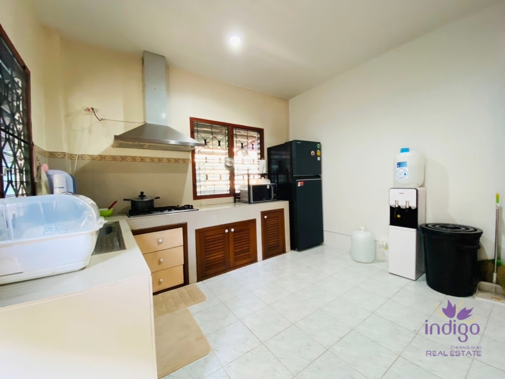 This is a lovely well maintained home in a great location close to Central Festival and Chiang Mai city. Features:- Spacious open plan living and dining area- Separate large kitchen - 4 bedrooms upstairs- Covered car parking / patio area for outdoor living- Large extended room that could be used as an office, storage, or for business. Great location close to international schools such as Unity, ACIS and Varee School; close to Central Festival and Meechok Plaza. Plese contact us now for more information or to view. ...