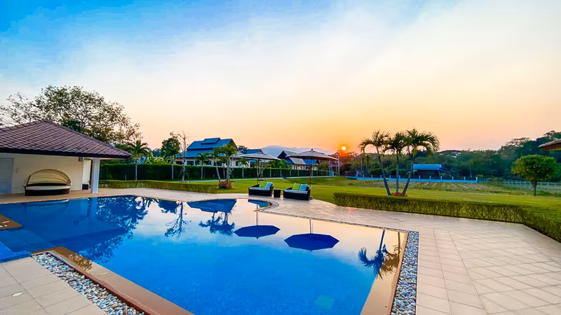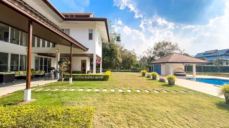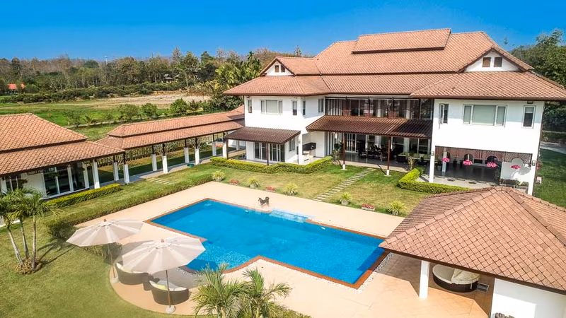 Luxury pool villa for Sale/Rent in Mae Rim (near Premtinsulanonda International School)This luxurious and Modern-Lanna-style property located in Huai Sai is stunning with a panorama beautiful field view. Close to Premtinsulanonda International School only 1 km.his mansion of a house consists of 4 bedrooms, 5 bathrooms, a double story combined dining and living room space with a TV lounge and office space connected.There are 2 bedroom guesthouse on the premises as well as 2 maid quartersOther details:- 4 bedrooms- 5 bathrooms.- 1000 sqm of living space.- 4 rai 40 sq wah of land. (6560 sqm)- Western and Thai kitchens.- Covered parking for 4 cars.- 2 bedroom guesthouse.- 14x6 m. swimming pool.Sell price: 44,995,000 BahtRental: 130k/monthTravel:- Mae Rim Elephant Camp 5 km.- Tiger Kingdom 5.4 km.- Makro Maerim 9.5 km.- Nimman area 21 km.- Airport 28.5 km. ...