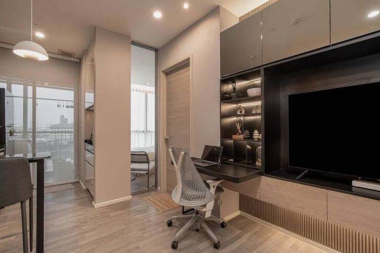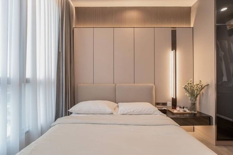details - Size 1 bedroom, 1 bathroom, area 35 sq m. - 7th floor, south view room The room has a view, not blocked, not hot. - Fully furnished, fully decorated with built-in furniture + floating throughout the room ✅️Fully decorated - Including built-in furniture in the entire room (TV shelf, decorative wall behind the sofa, work desk, decorative wall at the head of the bed bedside table) - 1 kitchen set - 1 mini bar of beverages